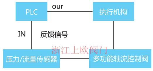 2、 將壓力傳感器輸出反饋信號送入PLC處理,經PLC預設值比較后輸出相應控制信號給電動執(zhí)行裝置,并驅動閥門運轉至對應位置(閥門開度)。